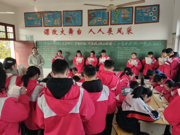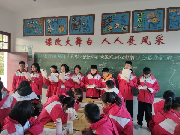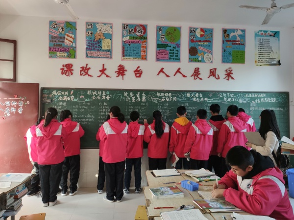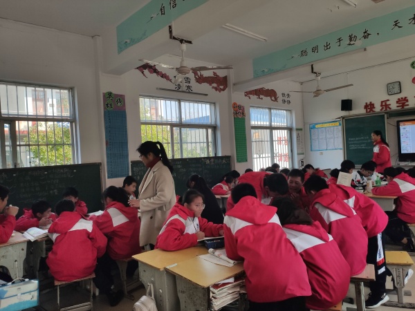在觀摩課堂的環節中,老師們自由選擇班級進行聽課,再次深入了解“五環漸進式”課堂模式,特別關注各學科在模式的"五環"如何一步一步地漸進的。看,第一環的練習回顧通常以上板方式開展,學生離開座位到教室內外的黑板進行練習和聽寫,完成后科代表對反饋情況進行評價,第二環是小組討論,小組成員圍繞學習任務進行互學互助,學生們討論氣氛熱烈。第三環是展示提升,需要展示的學生們能大聲自信地展現小組的學習成果,同學們的補充質疑產生互動,互動展現生成,這是最精彩的一環;接下來是瀏覽鞏固和達標檢測,在這環節中教師可根據學生學習情況進行干預,給予學生學習情況進行點評,同時提供一些與本節課知識點相關的檢測,要求人人對所學的知識點掌握過關。“五環漸進式”課堂模式充分體現"學生是課堂的主體,教師是課堂的主導"的理念。