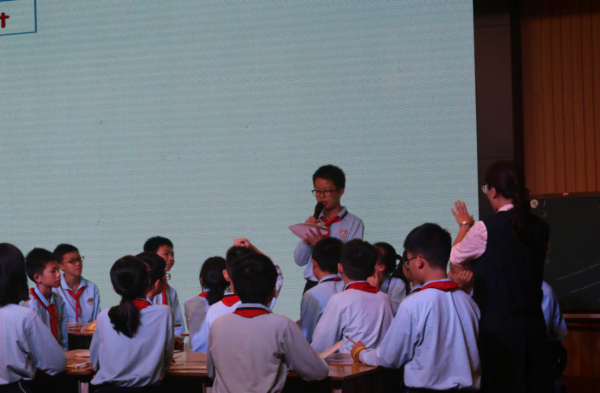 陳爾琪副校長本次的上課內容為陽光英語(初一上)故事繪本The Magic Porridge Pot。本節課主要采用了閱讀圈(Reading Circle)的閱讀教學模式,通過Summarizer,Question Rasier、Word Master、Critical Thinker和Connector五個閱讀圈角色進行展示和交流,著重針對學生思維品質的批判性進行了有效的訓練。有趣的閱讀圈教學模式,有效培養了學生獨立思考的能力和合作學習能力。在上課過程中,教師注重學生的主體性,教師在本堂課中起到輔助、啟發和串聯的作用,充分展現了以人為本的教學理念。