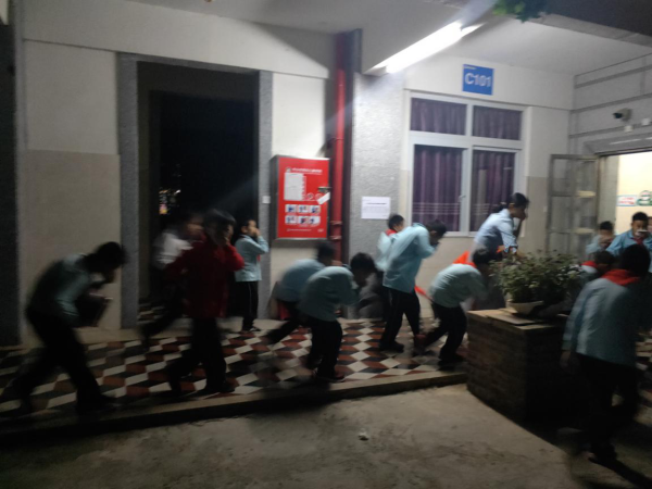 隨著警報響起,正在宿舍進行浴后清理的學生,在德育老師的組織帶領下,按照各個宿舍疏散逃生路線有序快速撤離宿舍樓,以最快的速度逃生到籃球場。全校師生安全有序撤離至安全區域,德育老師立即清點人數并向升旗臺的主管老師匯報安全到達人數。生活區主管陳筱明老師對此次演練進行了總結。她對本次消防演習活動給予肯定,同時指出本次演存在的問題,希望同學們珍惜生命,尊重每一次的演練。生命只有一次,只有端正態度,掌握正確的逃生方法,才能在險情真正來臨時做到安全逃生。警報解除后,各班有序返回教室,演練圓滿結束。