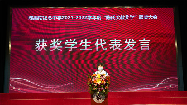 2022年陳紀(jì)中優(yōu)秀畢業(yè)生伍思蓉同學(xué)上臺(tái)發(fā)言,表達(dá)了對(duì)母校的感恩之情;優(yōu)秀教師代表鐘琴老師分享了自己的成長(zhǎng)經(jīng)歷,鼓舞全體紀(jì)中師生繼續(xù)奮發(fā)有為。
