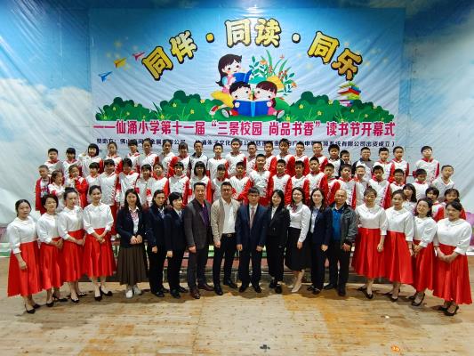 2023年3月27日上午,仙涌小學全體師生齊聚體育館,舉行第十一屆“三景校園·尚品書香”讀書節開幕儀式,閩泰金屬有限公司陳鑫董事長、陳容總經理蒞臨本次活動。