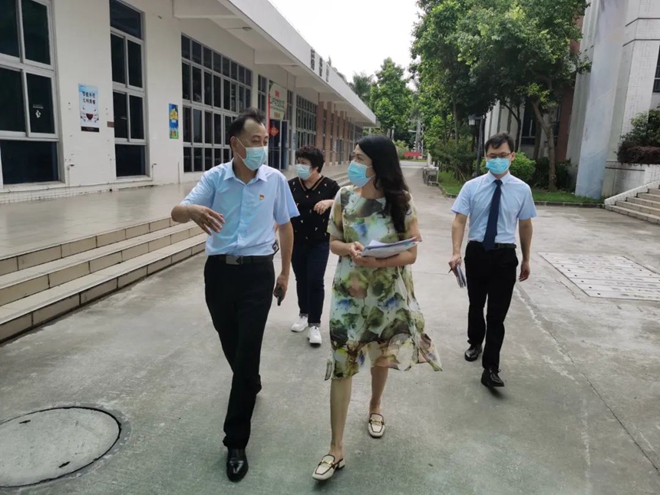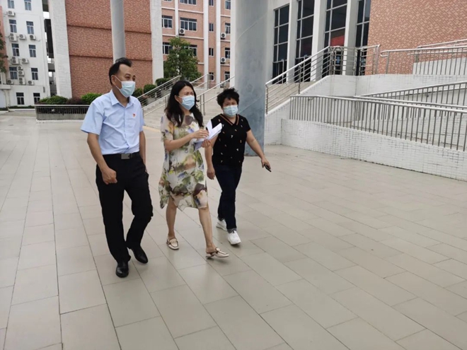 督查組在校長胡和秋的陪同下,查看了學校新宿舍樓、防疫物資儲備室、飯堂以及消防設施設備等,詳細了解師生返順、疫情防控、物資儲備、衛生管理、食品安全等相關情況。過程中,胡和秋向督查組匯報了學校防疫和安全工作,學校新宿舍樓的建設和投入使用情況,西藏班的發展和今年中考情況等。