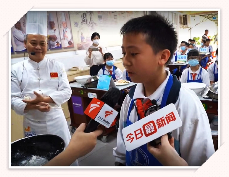 廣東南方衛視5月8日晚8時,紅旗中學勞動教育食育課程“姜撞奶”準時在節目《今日最新聞》播出,節目組希望開展“勞動教育 賦能成長”策劃,介紹宣傳部分市、縣優秀特色勞動課程,呈現他們精彩的勞動教育成果。佛山市紅旗中學作為活動首站,于2022年5月18日上午接受了節目組的直播和采訪,廚師就是老師,灶臺就是講臺,在全省甚至全國面前展示了我校的一節美食實訓課堂“順德姜撞奶”。課堂邀請了中國名廚孫永康先生對學生進行指導。
