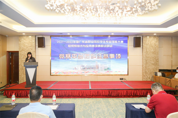 應(yīng)疫情防控要求,5月7日晚上7點,本次大賽賽前說明會在參賽隊伍入住的酒店舉行。省大賽辦督察員覃忠健、廣東技術(shù)師范大學信息中心原副主任王偉杰、順德區(qū)陳登職業(yè)技術(shù)學校教務(wù)處主任陳要求、陳村職校校長林家祥、副校長李毅、教務(wù)處主任周忠紅、教務(wù)處副主任杜文林、北京中廣智遠科技發(fā)展有限公司技術(shù)員蘭婷婷女士等出席賽前說明會。