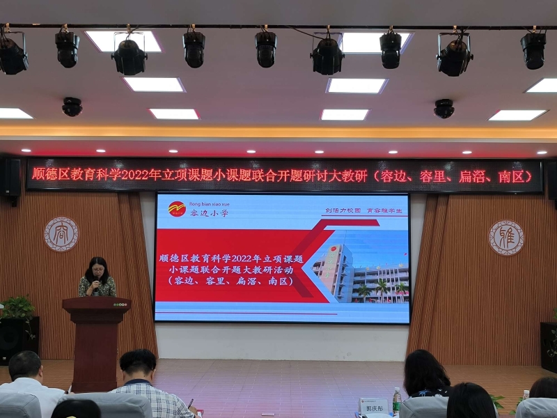 2022年11月10日上午,由容桂街道教育辦主辦、容邊小學承辦的順德區教育科學2022年立項課題小課題開題報告會在容邊小學報告廳順利舉行。