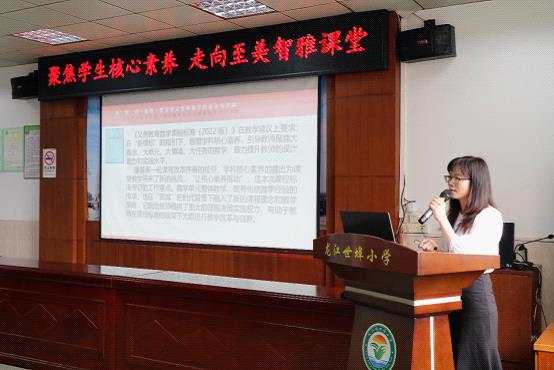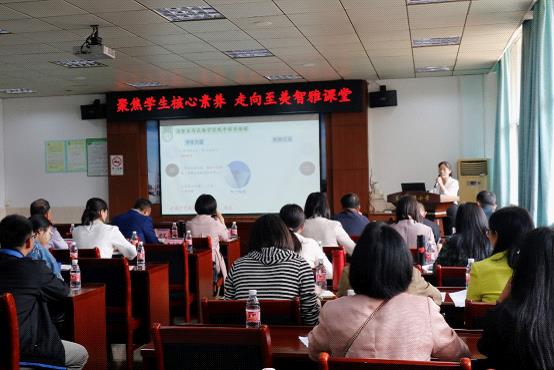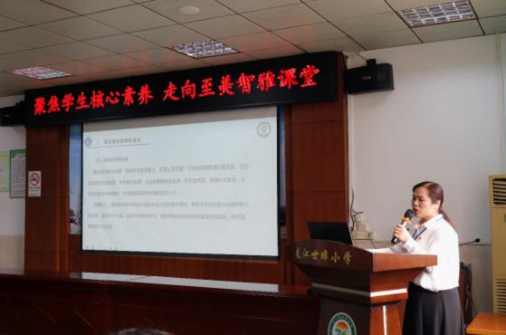 黎愛葉主任以《單元整合教學新視角,學科核心素養新探索》為題淺談了學校英語科組建設的思路和做法
