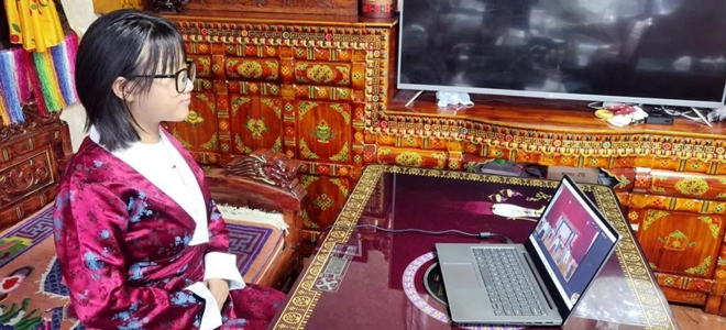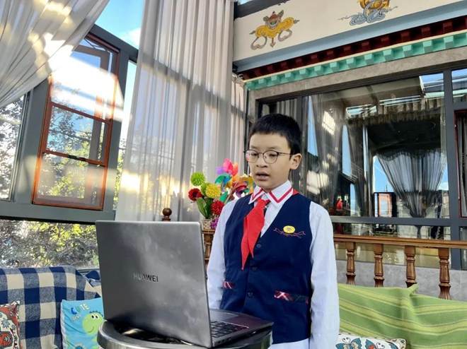 滯留西藏學生通過網絡直播參加線上升旗儀式