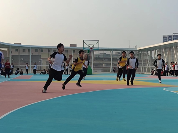 賽場上精彩激烈,隊員們奮力拼搏:你快攻,我搶斷;你突破,我上籃。比賽高潮迭起,比分交錯上升。默契的團隊配合,迅猛的進攻,嫻熟的運球技巧以及積極的防守,球員們展現(xiàn)出了不畏艱難、拼搏進取、朝氣蓬勃、永爭第一的青春活力。