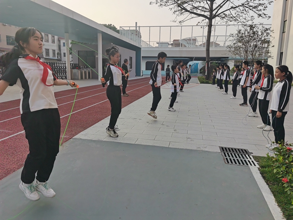 在大課間中,你都能看到學生們在教學樓前積極的練習著。現在他們終于能在賽場上一展身手了。