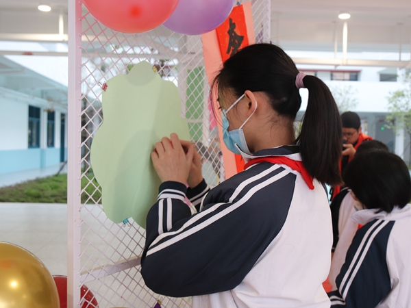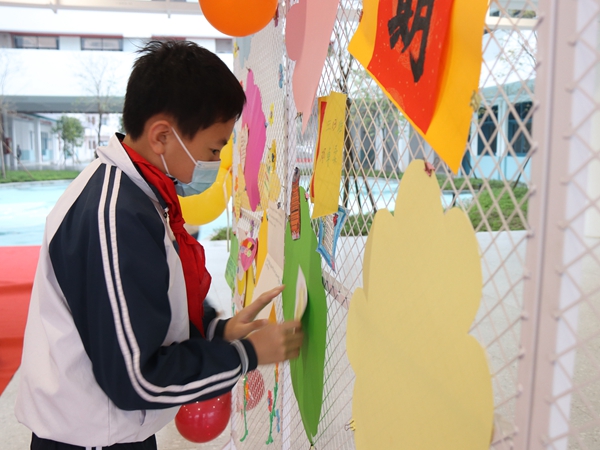 清早,兩只“吉祥兔子”和老師、家委們已經(jīng)在龍外附小的校門口等候同學(xué)們的回歸。洋溢著笑容的同學(xué)歡歡喜喜地從“吉祥兔子”的手里接過象征著身體康健、學(xué)業(yè)猛進(jìn)的棒棒糖,認(rèn)認(rèn)真真地在心愿墻上貼上自己和家長的心愿卡。