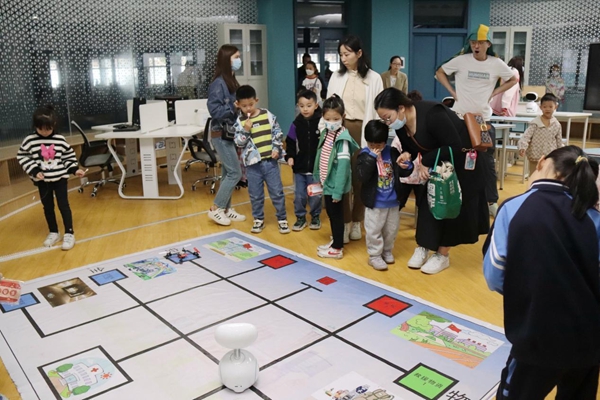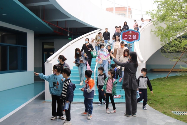 體驗課結束后,老師們帶著孩子和家長們參觀了校園空中操場、陶藝室、科創室、美術室、音樂室、跆拳道室、烘焙室、教學樓、閱讀書吧以及親水平臺。親切的笑容、熟練專業的講解得到了小朋友們和家長們的認可和稱贊!