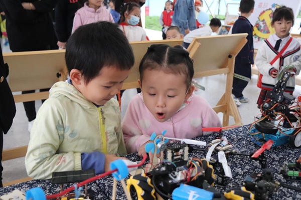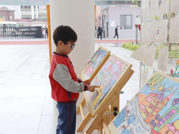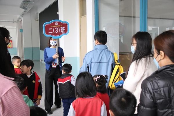 活動伊始,家長們領著小朋友踏入龍外附小校園。 一進校門,孩子們就被校園里嚴肅而活潑的氣氛吸引住了,幾分膽怯又有幾分激動。這里的樓宇長廊、一草一木都吸引著孩子們的目光,干凈整潔的操場,寬敞明亮的教室,多彩多樣的書法展品、美術展品、科創展品,真讓人憧憬呀!