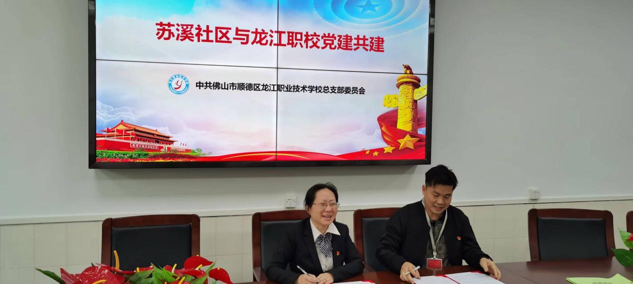 為切實發(fā)揮黨建引領(lǐng),凝聚共建合力,推動黨建“融入村居發(fā)展、融入學(xué)校提升、融入校企共建”,2023年4月7日,龍江職業(yè)技術(shù)學(xué)校第二黨支部與蘇溪社區(qū)黨支部在我校舉行黨建共建結(jié)對暨簽約儀式。