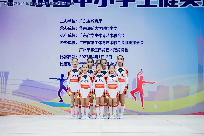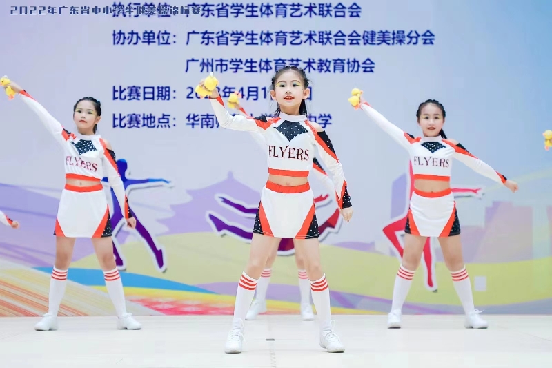 2022年廣東省中小學生健美操錦標于2023年4月1號、2號在華南師范大學附屬中學體育館圓滿落幕。本次比賽由廣東省教育廳主辦,華南師范大學附屬中學承辦,廣東省學生體育藝術聯合、廣州市學生體育藝術教育協會協辦,容山小學健美操隊參加了本次比賽。