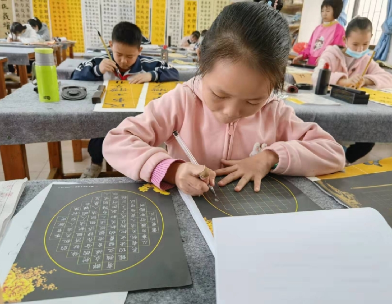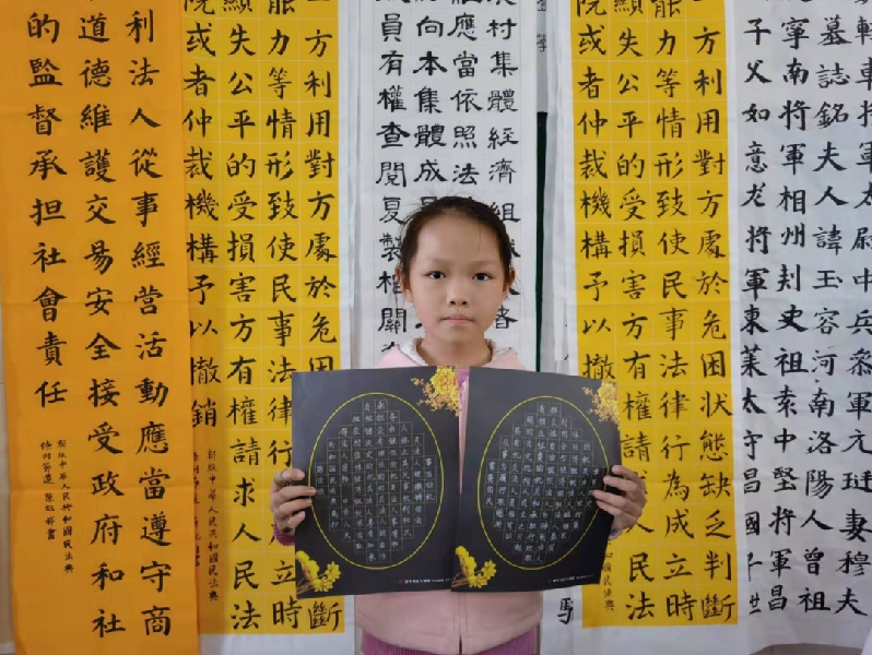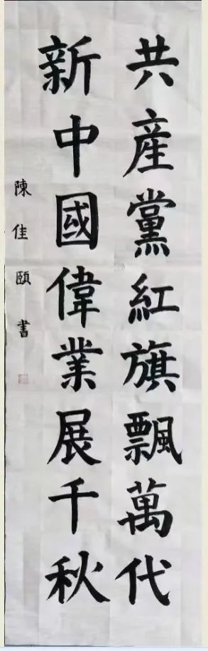 陳佳頤同學是紅旗小學四年(4)班的學生,她學習成績優秀,可絕不是“書呆子”。她是一位活潑可愛的小女孩,也是一位愛熱鬧、喜歡玩耍的小女生。但是,一說到書法練習,年紀小小的她可以馬上收起那顆愛玩的心,認真投入練習。她勤學刻苦,挑戰自我,在書法學練中取得了喜人的成果。