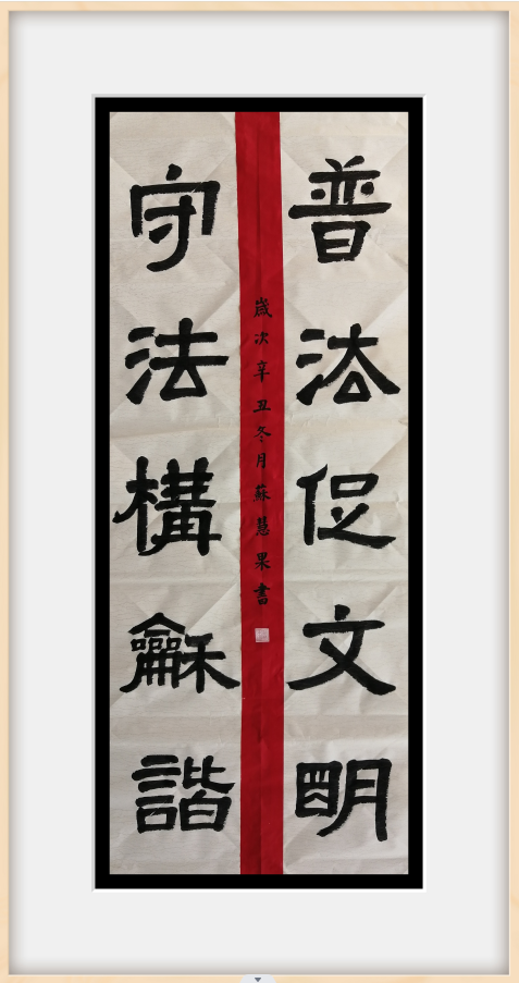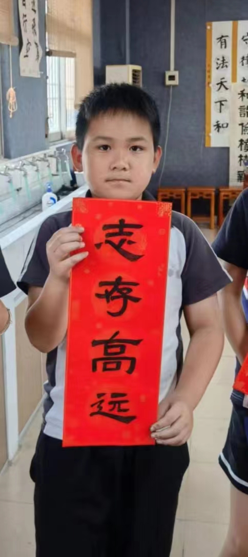 蘇慧果同學是紅旗小學五年(4)班的學生。他學習勤奮,成績優異;他興趣廣泛,全面發展。課余時間,蘇慧果同學喜歡閱讀、運動、下棋,還經常參加書法訓練。他多次參加容桂街道、順德區、佛山市中小學生書法大賽,皆獲佳績。