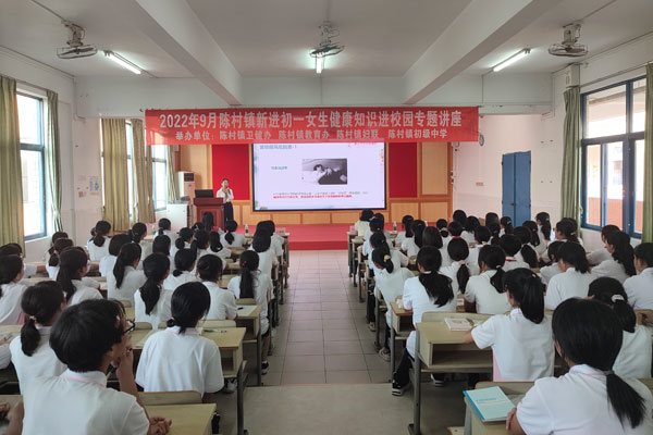 花開應有時,青春期的孩子隨著生理、心理的變化,已進入朝氣蓬勃又躁動不安的花季。為增強女生對青春期生理知識的了解,加強青春期心理健康教育,增強自我防范和自我保護意識,2022年9月13日下午,陳村鎮初級中學組織七年級女生在三樓會議室進行了一場女生健康知識講座。陳村鎮衛健辦何紫晴副主任、佛山市婦幼保健院宋珊珊、陳村鎮初級中學汪立云副校長、周素芳副主任等參與此次活動。