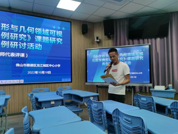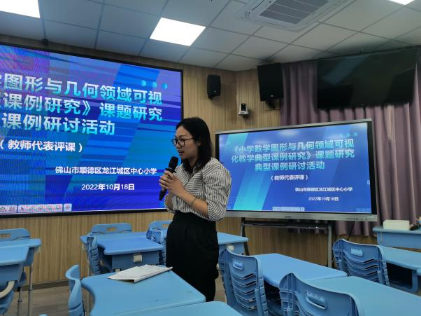 緊接著是,教師代表對本次展課的點評。本次展課借助可視化教學,教師能對學生的數學思維過程進行引導,優化學生的數學思維發展路徑,提升數學思維品質。本次課堂是一次精彩的展示,值得每一位老師學習。