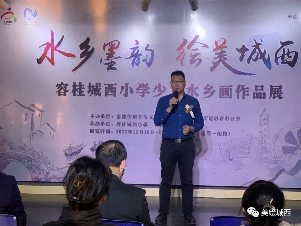 最后是容桂街道宣傳文體旅游辦公室周文標(biāo)副總監(jiān)發(fā)言,他充分肯定了城西小學(xué)近20年來(lái)一直緊隨容桂街道推動(dòng)水鄉(xiāng)畫(huà)文化項(xiàng)目發(fā)展的步伐,用堅(jiān)持與拓展對(duì)水鄉(xiāng)畫(huà)進(jìn)行著傳承與發(fā)展,一步一個(gè)腳印,取得了豐碩成果,希望學(xué)校進(jìn)一步深度挖掘各方資源,加強(qiáng)普及教育,加強(qiáng)成果經(jīng)驗(yàn)推介,促進(jìn)學(xué)校水鄉(xiāng)畫(huà)品牌高效高質(zhì)量發(fā)展,為容桂培養(yǎng)更多的藝術(shù)人才。