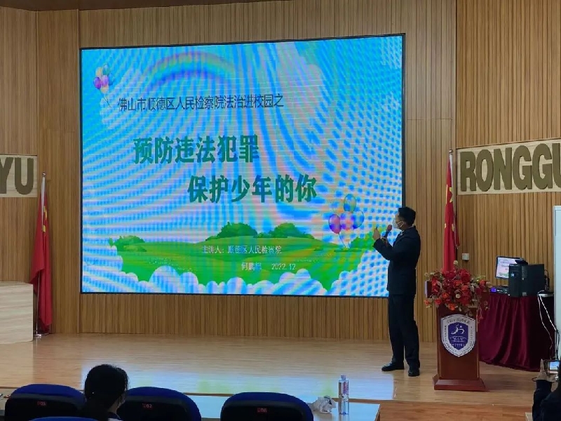 12月16日上午,我校在電教館開展“預防違法犯罪,保護少年的你”預防校園欺凌的講座,講座邀請到佛山市順德區人民檢察院二級檢察官何鵬輝先生主講。