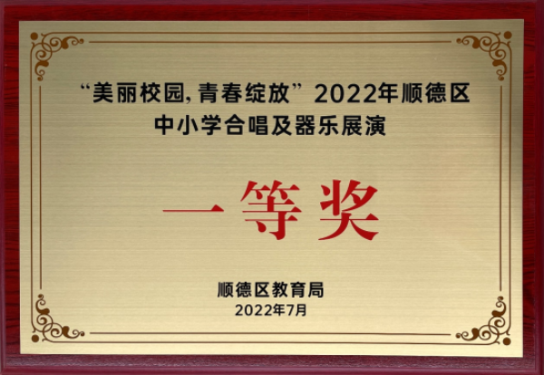 我校504班,是黃繼紅副校長的音樂教學班,劉藝、黃嘉穎二位音樂老師共同參與排練,參加“美麗校園,青春綻放” 2022年順德區中小學合唱及器樂展演榮獲一等獎,三位音樂老師獲得優秀指導教師獎。