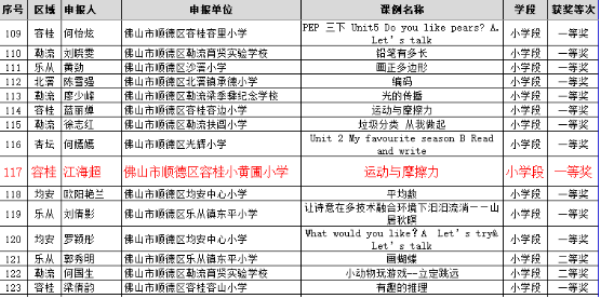 在順德區信息技術應用能力提升工程2.0典型成果征集與評選活動中,我校江海超老師的課例《運動與摩擦力》獲得順德區教學創新精品課例一等獎。