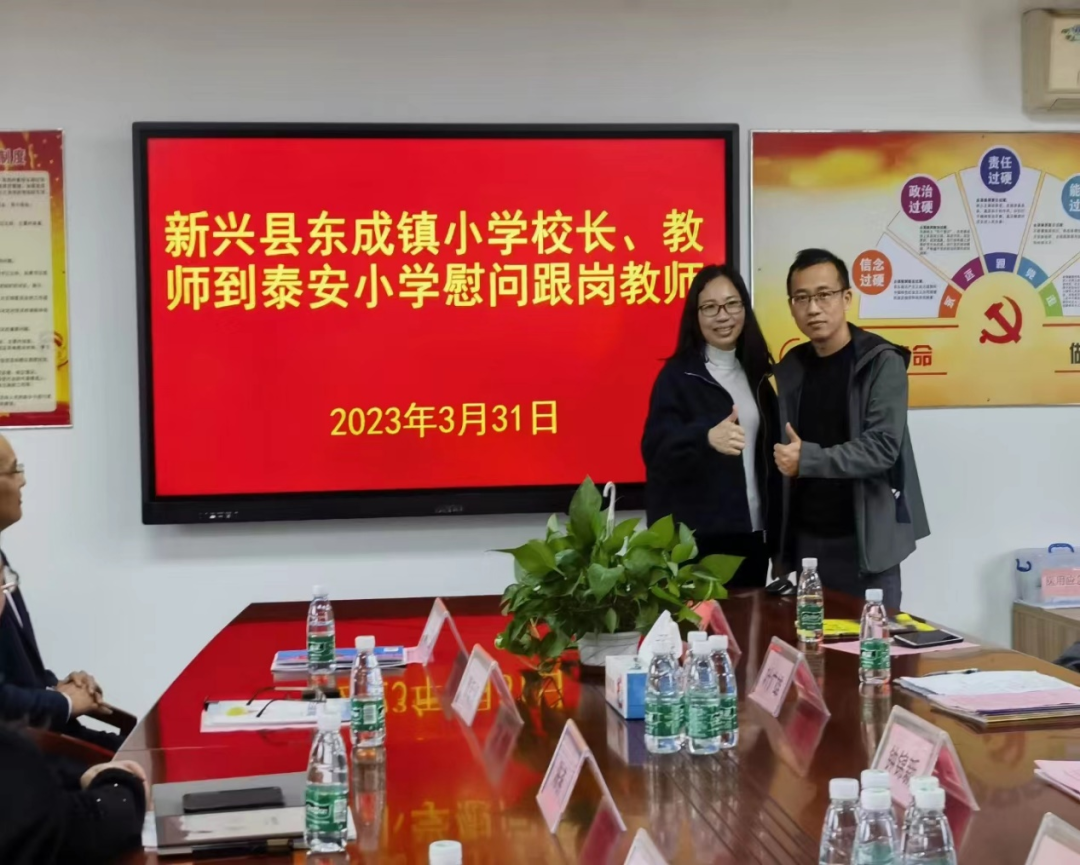 為深入推進基礎教育對口幫扶工作,充分發揮學校品牌示范、引領和輻射帶動作用,落實與相關學校定期互訪、教師互派、教研互動,云浮市新興縣東成鎮組織校長、教師一行18人赴順德區容桂泰安小學開展交流活動,我校陳燕校長帶領學校行政人員熱情接待了新興縣東成鎮教育同仁。 本次交流活動共有六大環節,泰安小學朱錦明副校長負責活動主持。首先,我校陳燕校長上臺致辭,對新興縣東成鎮交流團隊的到來表示熱烈的歡迎。隨后,新興縣東成鎮鐘錦新校長代表交流團隊感謝學校的熱情接待,向大家介紹隨同參觀的人員,并希望往后有更多機會繼續推進順德、新興兩地的互動交流。 接著,由泰安小學嚴翠娟主任作學校特色發展專題講座《書香養慧,全員育美》,向在場來賓介紹泰安小學的發展歷程,介紹泰安小學以“書香立校,讀書立人”的辦學理念、學校的品牌特色、品質課堂、多樣社團的開展等,以及近年來取得的一系列辦學成果。 然后,東成鎮校長、教師慰問跟崗教師區燦榮。交流團隊與我校行政親切交談,詳細了解跟崗教師工作、生活等各方面情況,對學校給予跟崗教師的幫助和照顧表示感謝,同時勉勵區老師不負重托、高效優質地完成跟崗任務。 下午,由我校德育處譚子強主任開展關于德育、班主任管理的專題講座《“三行”德育,點亮未來》。讓大家深入了解泰安小學的德育管理模式以及德育改革帶來的豐碩成果。雙方學校領導老師還相互交流和研討了在教育教學發展中的一些問題,以及采取的方法和措施。 隨后,陳燕校長、朱錦明副校長熱情地帶領交流團隊參觀學校科創室、音樂室等多功能場室,同行人員參觀各項科創項目,進行互動交流,都對學校的品牌特色項目贊嘆不已。雙方一致表示,學校之間要進一步加強聯系,密切合作,共同發展,共同進步。 活動最后,新興縣東成鎮交流團隊與我校行政一同合影留念,為期一天的交流活動圓滿結束。 兩地交流促發展,互動探索共提升。我校將繼續深入開展與云浮市新興縣全方位的交流合作,力求促進兩地教育資源共享、優勢互補,為實現雙方教育協同均衡發展不懈努力。
