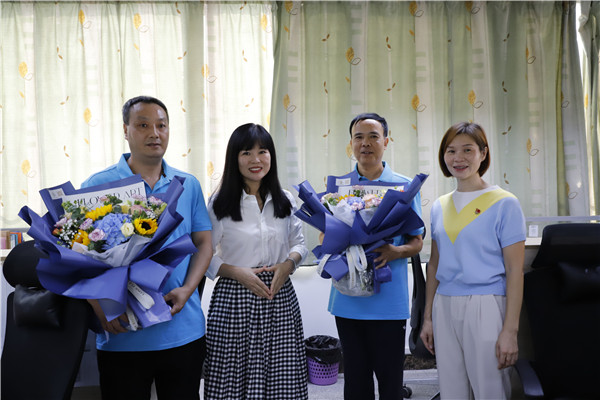 接著,俞委員一行走進教師辦公室,向年滿30年教齡的老師贈送鮮花,并向學校全體教師致以最誠摯的節日祝福,寄予深切的期望。俞委員向老師們描繪了陳村鎮未來的發展藍圖,表達了鎮委鎮政府對教育事業的關心支持,她希望老師們能不斷提高自己的教育教學水平,為陳村的高質量發展培養更多的人才。最后她深情地說到:“老師們,節日快樂!”領導濃濃的關懷,鞭策著老師們積極肩負起教書育人的責任,繼續乘風破浪,奮楫篤行,為陳村的教育事業貢獻力量!