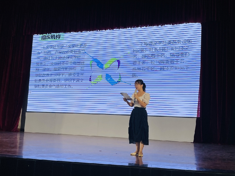 隨后,韓老師宣讀了文學社組織機構及社員名單,馬丫老師及兩名顧問向文學社導師頒發了聘書,李麗副校長代表學校耘夢文學社的成立表示熱烈祝賀,希望全校老師以文學社的成立為契機,切實提升文學素養。李校的致辭中,充滿了對校園文學的殷切期待,她勉勵在座的同學們能珍惜當前,正視人生,要大膽展示自我,自信展現風采,做推動校園文化發展的催化劑,成為校園文化的傳播者。