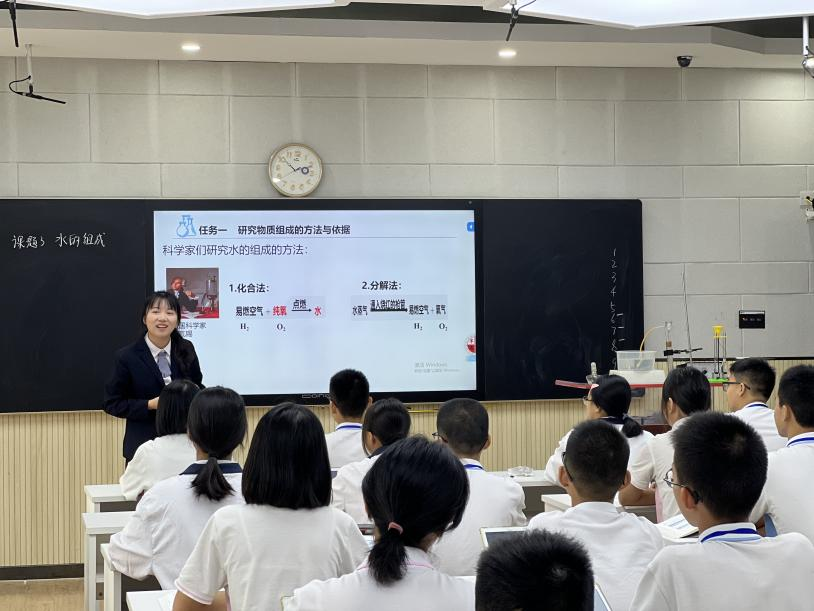 朱維斯老師利用任務驅動的學習模式,引導學生明確學習任務。課堂上,注重引導學生用多種方法探究物質的組成。
