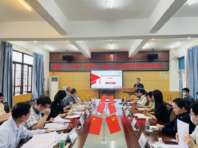 會議伊始,由佛山市少工委副主任、佛山市少先隊總輔導員沈希為省級課題組頒發立項證明,緊接著由華口小學和容山小學的課題主持人進行開題報告——華口小學劉仕強《“雙減”背景下少先隊紅色基因傳承實踐研究》、容山小學董嘉麗《少先隊組織開展志愿服務活動對增強少先隊員光榮感的研究》。