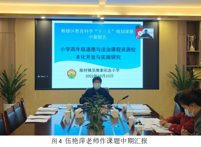 伍艷萍老師主持的《小學中高年級道德與法治課程資源校本化開發與實施研究》課題進行了中期匯報。匯報上,伍老師詳細匯報了開題以來課題組所作了研究工作。四位專家肯定課題前期所做的工作,認為其順應時代的主旋律,有較高的研究價值,并對課題后續的研究工作,提出切實可行建議,鼓勵課題組聚焦“開發”,深挖課程校本資源,把課題做精、做實。