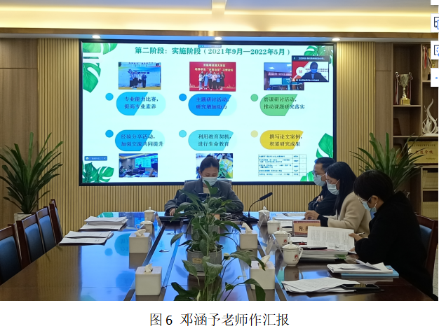 鄧涵予老師作《成長記錄冊在“后疫情時期”小學高年級生命教育中的應用研究 》的結題匯報,詳細而系統地匯報課題研究的過程與成效。葉健老師肯定了課題的現實意義和研究價值,他積極鼓勵課題成員要繼續深入研究,把本次課題收獲的成效、方法與經驗輻射延用到“后疫情時期”生命教育活動中,并對課題的研究提出寶貴的指導性意見和建議。