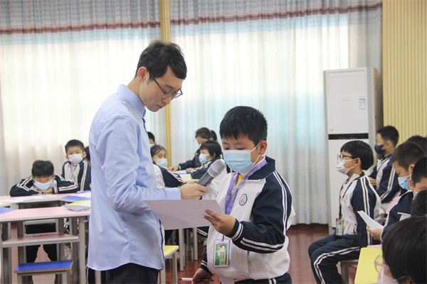 石洲小學莫鎵威老師執教課例《獨一無二的我》。莫老師的心理課堂輕松愉快,學生積極參與,真誠分享,教學設計充滿智慧,層層遞進,積極落實心理健康教育課堂提升學生核心素養的要求。從暖身游戲“猜猜我是誰”出發,激發學生興趣,同時也讓學生明白每個人都有獨一無二的特點;接著觀看繪本《小豬球球的煩惱》,并創設多個情境讓學生在角色扮演和換位思考中了解每個人都是有優缺點的,學會接受不完美的自己。最后借助制作名片“我眼中的自己”和“舒心信箱”兩個活動,讓學生在小組交流分享中認識自己的優缺點,并學會鼓勵同學正確看待自己的優缺點,接受獨一無二的自己,進而悅納自己、欣賞自己。