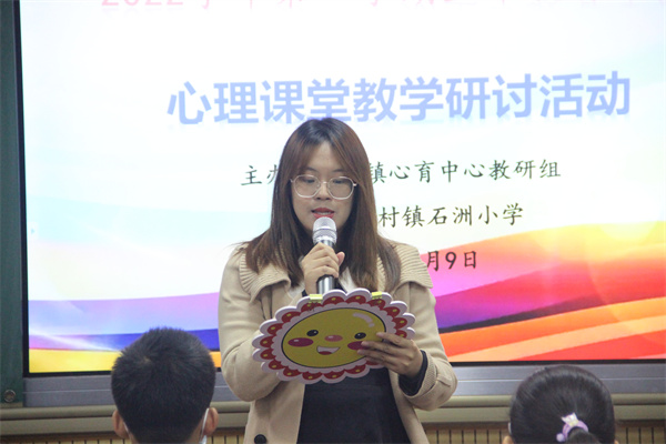 石洲小學何培雯副主任首先感謝鎮心育中心教研組積極搭建心育研討的平臺,讓專兼職心理老師們在教學實踐中得到更專業的引領與提升,為心理健康教育課堂注入了新活力。并希望將來能有更多的課堂研討活動,助力專兼職心理教師的專業成長。