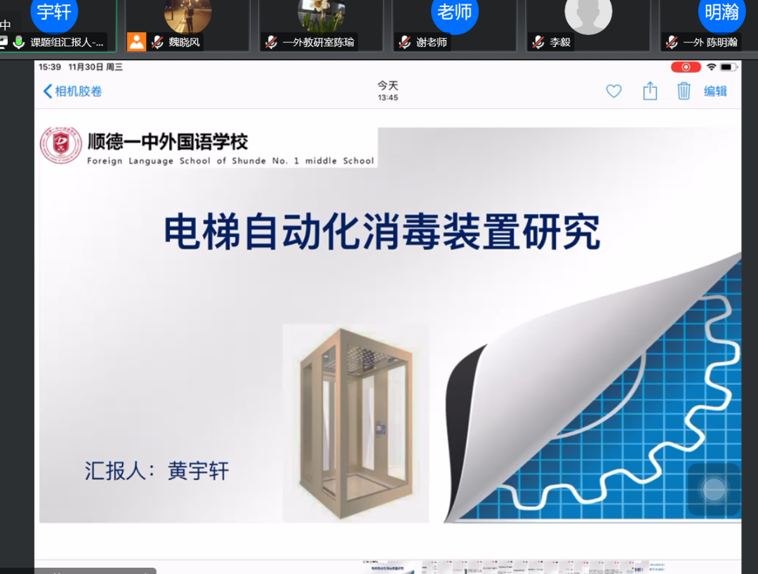 為進(jìn)一步培養(yǎng)學(xué)生的合作創(chuàng)新精神,促進(jìn)學(xué)生全面發(fā)展,2022年11月30日,順德區(qū)2022年“佛山市中小學(xué)生專項(xiàng)科研課題”線上聯(lián)合開題報(bào)告會(huì)(順德一中外國(guó)語(yǔ)學(xué)校會(huì)場(chǎng))順利舉行。順德李兆基中學(xué)謝樹亮副校長(zhǎng)、李偉強(qiáng)職業(yè)技術(shù)學(xué)校金銀鵬主任等專家組、順德一中外國(guó)語(yǔ)學(xué)校教師發(fā)展中心陳瑜主任、順德大良順峰初級(jí)中學(xué)教務(wù)處韓小艷主任參加了線上開題報(bào)告會(huì)。報(bào)告會(huì)由我校陳瑜主任主持。 本次進(jìn)行開題報(bào)告的有來(lái)自順德一中外國(guó)語(yǔ)學(xué)校的學(xué)生課題“神奇水槍”和“電梯自動(dòng)化消毒裝置研究”,以及來(lái)自順峰初級(jí)中學(xué)的學(xué)生課題“基于數(shù)學(xué)建模的順德區(qū)降雨量分析與預(yù)測(cè)研究”和“壁掛式空調(diào)濾網(wǎng)清理的改進(jìn)”。 兩校課題組成員從課題選擇的背景和意義、研究問(wèn)題與方向、研究方法、成員分工、研究方案與過(guò)程、課題預(yù)期成果等方面進(jìn)行了詳細(xì)的闡述和匯報(bào)。 課題名稱:電梯自動(dòng)化消毒裝置研究 課題成員:江梓維(組長(zhǎng))、黃宇軒、肖京翰 、陳思宇 指導(dǎo)老師:汪長(zhǎng)金、馬淑文 本次選題探究的問(wèn)題是如何在確保電梯乘坐人員安全的情況下,試研制一套紫外殺菌燈裝置,實(shí)現(xiàn)電梯轎廂內(nèi)的自動(dòng)化消毒功能。 具體研究以下問(wèn)題: 1.如何實(shí)現(xiàn)高效消毒功能; 2.如何實(shí)現(xiàn)感應(yīng)閑置及無(wú)乘客狀態(tài)下啟動(dòng)消毒功能; 3.如何實(shí)現(xiàn)電梯內(nèi)全面消毒,確保消毒效果。 課題名稱:神奇水槍 課題成員:陳明瀚(組長(zhǎng))、范東祺、梁昊 指導(dǎo)老師:馬淑文、汪長(zhǎng)金 通過(guò)神奇水槍的設(shè)計(jì),嘗試解決以下場(chǎng)景: 1.高層滅火:在進(jìn)氣口添加熔點(diǎn)低的熔絲,然后在發(fā)生火災(zāi)后,熔絲自動(dòng)融化,氣體進(jìn)入,水(其他滅火物質(zhì))噴出。 2.簡(jiǎn)易水槍:在噴射口和進(jìn)氣口各裝一個(gè)可控制閥門,可以控制液體的裝入、保存與發(fā)射。 3.農(nóng)業(yè)噴灌:用導(dǎo)管向氣球中輸水,控制氣閥控制水的進(jìn)出。 隨后,專家組分別點(diǎn)評(píng)兩校課題。他們肯定了學(xué)生們在科研上結(jié)合生活實(shí)際開展思考和創(chuàng)新,并就課題報(bào)告的研究方向、撰寫內(nèi)容等提出切實(shí)可行的建議。專家組期盼同學(xué)們能夠盡快將研究轉(zhuǎn)化為成果,將理論用于實(shí)踐。 陳瑜主任感謝專家組對(duì)我校學(xué)生課題的指導(dǎo),她表示,學(xué)校將全力支持學(xué)生課題的順利開展,扎實(shí)推進(jìn)研究,鞏固成果,助力一外學(xué)子全面提升綜合素質(zhì)。 順德一中外國(guó)語(yǔ)學(xué)校向來(lái)重視學(xué)生的課題研究,推動(dòng)學(xué)生以研促學(xué),以學(xué)促思。而學(xué)生課題的成功開題,也是對(duì)一外學(xué)子創(chuàng)新能力培養(yǎng)、動(dòng)手能力提升的良好契機(jī),學(xué)校老師將不遺余力幫助學(xué)生課題深入研究,順利開展。