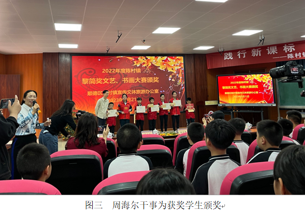 陳村鎮(zhèn)宣傳文體旅游辦公室王小清科長為學(xué)校頒發(fā)2022年“黎簡獎優(yōu)秀組織獎”,黃偉副校長代表學(xué)校接過獎牌,周海爾干事為獲獎孩子頒獎。緊接著,三年級的孩子們進入了快樂的“陳村年桔非遺課堂”活動,深入認識“桔桔”,在陳村鎮(zhèn)年桔協(xié)會梁鉅東會長的指導(dǎo)下,學(xué)習(xí)為桔果剪枝。花鄉(xiāng)小記者團隊參觀龍津文化陳列館,尋覓千年花鄉(xiāng)的印記;訪問陳村粉食府,品嘗地道美食,感受生活酸甜滋味。