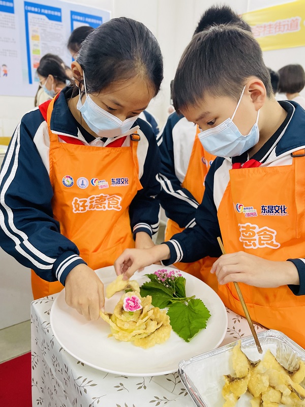 煎炒蒸煮烹世間百味,油鹽醬醋蘊生活大美。貼近生活、接地氣的廚藝比賽,切實為“雙減”增質,不僅豐富了學生的生活,還培養(yǎng)和提高了學生的綜合實踐能力,潛移默化地傳承本土文化、弘揚家鄉(xiāng)情懷。讓孩子們懂得在生活中學習、品味、收獲,促進學生核心素養(yǎng)的發(fā)展。