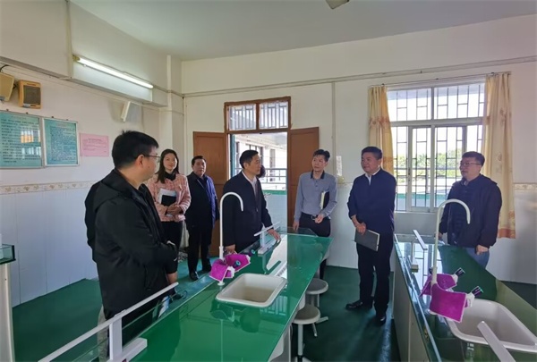 姜副局長率領市教育技術中心調研組一行抵達校園,在該校吳勇明校長等行政的陪同下深入化學、物理和生物實驗室等場室進行實地查看,了解實驗室改造項目及教育裝備朗讀亭等的管理和使用情況。調研組實地查看了該校正在建設的報告廳和智慧課室,并提出了寶貴的意見和建議。