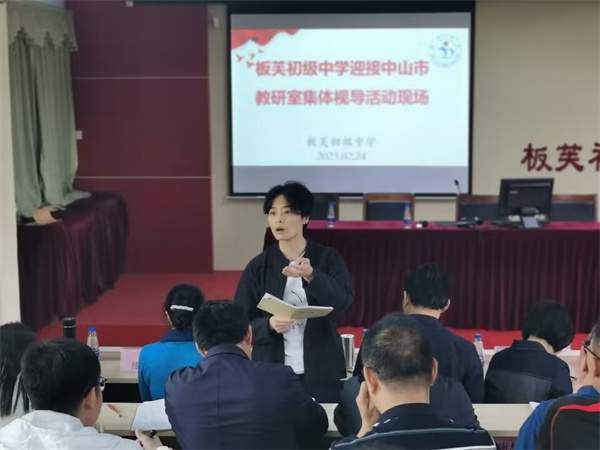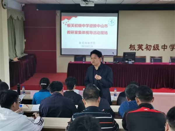 為進一步貫徹“雙減”精神,落實新課程標準要求,規范教學行為,優化課堂教學,提高學校整體教育教學水平,2月24日,板芙初級中學迎來了中山市教育教學研究室組織的初中部教學視導工作。板芙鎮教育和體育事務中心主任謝柳青、副主任李杰華、鎮教師發展中心成員,該校全體行政、相關學科的教師及鎮內各學校學科教師參加此次活動。