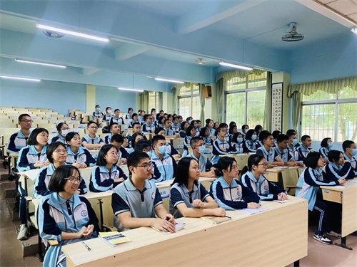 團課中,吳勇明校長帶領青年團員們深入學習《共青團的使命及性質》《新時代青年的新使命》《青年不忘初心跟黨走》《青年建功新時代》等內容。他在團課中語重心長的告訴同學們:青年唯有堅定信仰才能立下為國為民志;唯有勤奮學習,才能擔當歷史賦予的建設社會主義的重任;唯有跟黨走,才能為實現中華民族偉大復興的中國夢貢獻力量。面對未來的不確定性,要增強學習力、適應力,唱響新時代的青春之歌。同時,他指出:做一名優秀的共青團員需做到四點:有理想、有擔當、不保守、肯付出。他勉勵青年團員要樹立遠大理想、熱愛偉大祖國、勇于砥礪奮斗、練就過硬本領、擔當時代責任、錘煉品德修為,自覺樹立和踐行社會主義核心價值觀,內化于心、外化于行,做到“黨有號召,團有行動,不忘初心、牢記使命”。他要求同學們牢記習近平總書記對青年的深情囑托,真正發揮團員的先鋒模范作用,當好黨的助手及后備軍,爭當新時代志愿者,努力成長為德智體美勞全面發展的社會主義建設者和接班人,為實現中華民族偉大復興的中國夢凝聚青春力量。