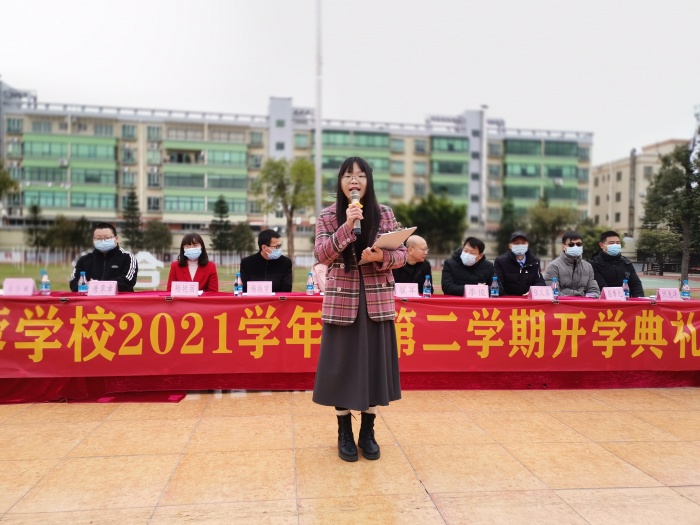 接著,優(yōu)秀教師代表與九年級學(xué)生代表上臺發(fā)言。師生代表言語間均充滿了對新學(xué)期的期望和憧憬。黨員教師廖月銀老師表示,本著“對學(xué)生負(fù)責(zé)”的宗旨,將以敬業(yè)務(wù)實(shí)的精神開拓進(jìn)取,與學(xué)生共同創(chuàng)造人生的奇跡。她向同學(xué)們提出,在學(xué)習(xí)中要帶上理想和目標(biāo)、自信和堅(jiān)強(qiáng)、勤奮和努力。而學(xué)生代表發(fā)言則表達(dá)了九年級同學(xué)備戰(zhàn)中考的決心和對中考的信心,對學(xué)校、老師的謝意,并在發(fā)言中代表全體同學(xué)鄭重承諾:一定會珍惜學(xué)習(xí)中的分分秒秒,用最大的熱情和努力迎接新學(xué)期新生活。
