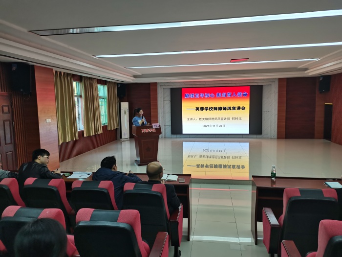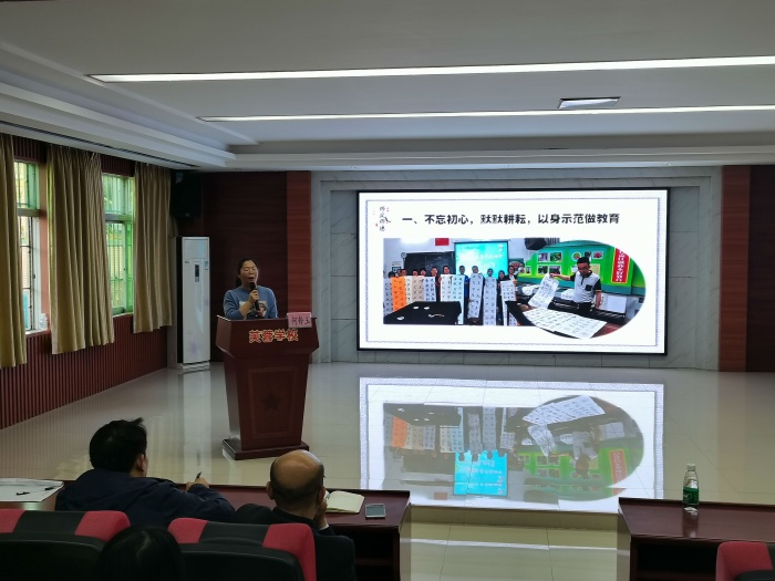 11月25日下午,芙蓉學校全體教師以熱烈的掌聲歡迎何鈴玉老師登臺演講。何鈴玉老師是板芙鎮深灣小學一名老師,也是板芙鎮師德師風宣講員。