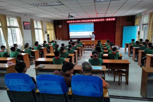 5月7日,由廣東省視光學學會組織的近視防控宣教講座在板芙小學開講,此次宣教講座主要從眼球的發育、近視的形成原因、近視的危害、近視如何防控以及少年兒童日常眼保健等方面進行了生動、直觀的講解。并用幻燈片等方式向孩子們展示了一些日常生活、學習行為中正確與錯誤的圖片,羅列了一些行為判斷題,要求同學們對正確的行為予以鼓掌,對錯誤的行為說“NO”。同學們興致很高,爭先恐后的搶答提問,課堂氣氛活躍。之后,又給同學們提出了專業建議:告誡同學們要養成科學健康的用眼習慣,攝入均衡的飲食營養,牢記正確的讀寫姿勢,加強體育鍛煉,堅持眼部保健、睡眠充足、定期檢查視力等。