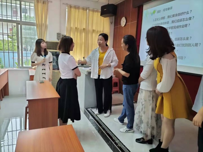 期間,吳丹婷老師請現(xiàn)場一位老師扮演孩子,真切體驗了一次被“鼓勵”與被“表揚(yáng)”。通過情景模擬,對孩子說傷害的話語和鼓勵的話語,讓模擬孩子的老師說說自己的感受和想法,從而使老師們更加了解孩子的內(nèi)心世界,也明白今后在教學(xué)中運(yùn)用哪種方法更有效。