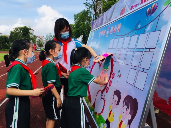 最后,在梁稱娣老師的帶領(lǐng)下,少先隊員們大聲呼號:“時刻準(zhǔn)備著!”,響亮的呼號聲為本次入隊儀式畫上了圓滿的句號。老隊員們在展板上寫下了暖心的祝福寄語,而新隊員們在宣傳欄上貼上了精心制作的心愿卡,暖語融融,誓詞情真懇切,無不彰顯出板小少先隊新鮮血液的生命力和活力。