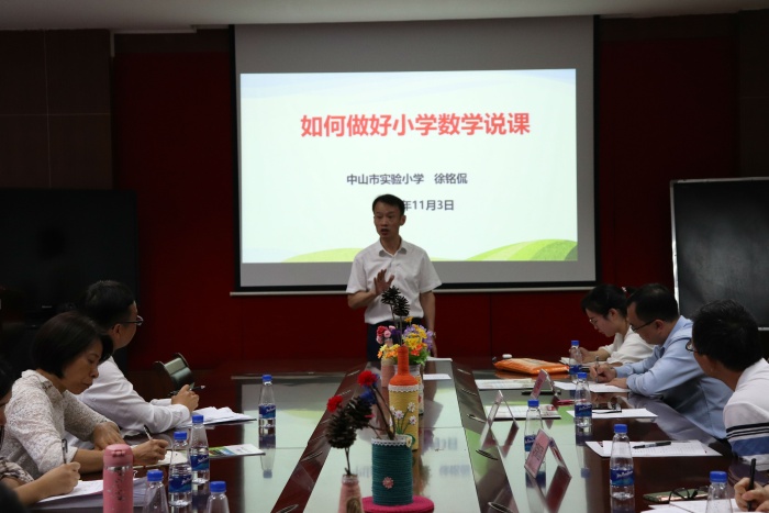 四位老師說課結束后,中山市實驗小學徐銘侃校長對四位教師的說課進行了點評,并給各位老師進行了一場《如何做好小學數學說課》的講座。徐校長的一席話,讓在場的各位老師受益匪淺。