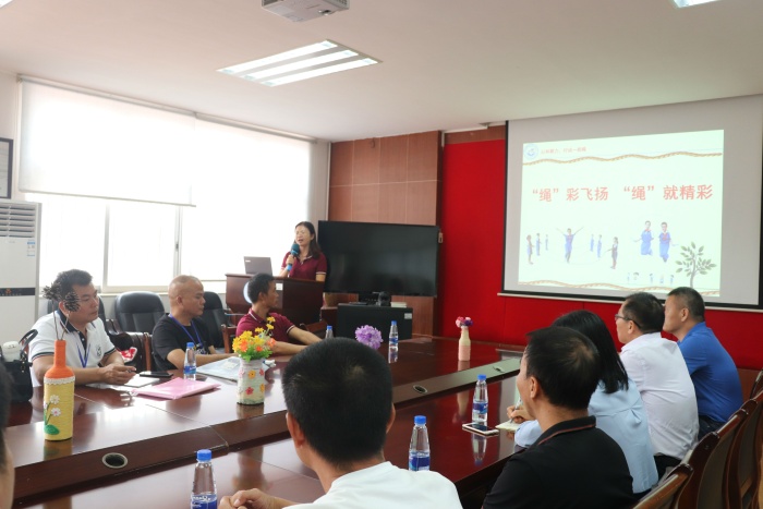 最后是特色建設匯報。老師們齊聚會議室,蘇雪霞校長詳細介紹了廣福小學花樣跳繩的特色創新發展,分享了“以繩增智、以繩厚德、以繩健體、以繩織美”的和力課程體系。蘇校長提到廣福小學旨在以課程培養學生、以課程成就教師、以課程發展學校。老師們都充分肯定了廣福小學本次跳繩活動的精彩紛呈。