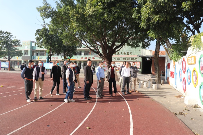 蘇雪霞校長帶領各位領導和企業家參觀校園田徑場、課室、飯堂、勞動基地等,詳細介紹了廣福小學近年來的發展情況,以及校園環境、校園文化、辦學特色等。