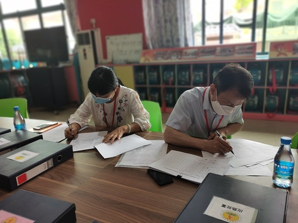 此次督導檢查主要包括“六項”管理、雙減工作、疫情防控工作等內容。徐銘侃和曹艷明兩位督導員首先聽取了學校行政在落實“雙減”工作及疫情防控方面的情況匯報,查閱了相關文件資料并逐項核查。督導員們還專門抽取了部分學生進行“雙減”問卷調查,將督導檢查調研工作深入到學生中去。另外,他們還在行政領導的帶領下巡視校園,并開展隨堂聽課。在巡視過程中,督導員們采取邊看邊聽邊動手翻閱室場資料的方式進行全面視察,對校園環境安全衛生高度關注。